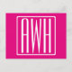 Carte Postale 3 Initiales Monogramme | Blanc sur rose chaud