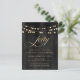 Moderne 40e anniversaire Elégant stylish Invitation - Elégante invitation de fête d'anniversaire comprend magnifiques calligraphies or orthographiant "quarante" avec des lampes à cordes d'or accrochées au-dessus d'un élégant arrière - plan noir. Notre modèle d'invitation moderne vous permet de customiser facilement votre invitation pour votre célébration spéciale. L'invitation fait partie d'une collection.
