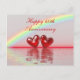 Carte postale avec mon oeuvre originale de deux coeurs rouges rubis flottant sur l'eau sous un arc-en-ciel. Le texte personnalisable dit "Joyeux 40e anniversaire".