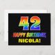 Le devant de cette carte postale amusante, joyeuse et colorée à thème d'anniversaire comporte un grand numéro "42" et le message "HAPPY BANTHDAY", tous deux colorés avec un motif inspiré par un gradient de spectre arc-en-ciel, ainsi qu'un nom de destinataire modifiable jaune en gras. L'avant est également orné d'une arrière - plan simple, minimaliste et noire. Le dos de la carte postale a un message de voeux d'anniversaire personnalisé, ou peut-être peut-être être effacé et laissé vide si un message doit être écrit à la main à la place. Une carte postale d’anniversaire personnalisée comme celle-ci pourrait être une façon amusante de célébrer le quarante-deuxième anniversaire de quelqu’un. [~Z0000474]