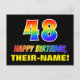 La façade de cette carte postale joyeuse, colorée et amusante à thème d'anniversaire comporte un grand nombre de "48" et le message "HAPPY BANTHDAY", tous deux dotés d'une couleur motif inspirée par un gradient de spectre arc-en-ciel, ainsi qu'un nom de destinataire modifiable jaune en gras. L'avant est également orné d'un arrière - plan de couleur noire. Le verso de la carte postale contient un message d'anniversaire personnalisé, ou peut-être peut-être effacé et laissé vide si un message doit être écrit à la main à la place. Une carte postale d’anniversaire personnalisable comme celle-ci pourrait être une façon amusante d’envoyer un message pour célébrer le quarante-huitième anniversaire de quelqu’un. [~Z0000474]