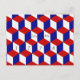 Illusion en 3D. Plusieurs blocs tridimensionnels en rouge, blanc et bleu sont empilés comme des blocs de construction. Regardez-les assez longtemps et les "hauts et les côtés" semblent changer de position. Texte dans les blocs centraux "4 juillet 1776"