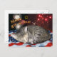 Carte Postale 4 juillet Chat et feux d'artifice