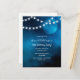 Une invitation pour une fête du 50e anniversaire pour lui et elle. Un soir et une nuit bleu nuit foncé avec une pleine lune, des nuages foncés et des cordes lumineuses. Modèles pour un nom, âge 50, lieu et détails de la fête. Retour : arrière - plan blanc. Conseil : Si vous ne voulez pas qu'il ressemble à une carte postale, cliquez sur customiser, allez à l'arrière et retirez le séparateur et le timbre postal.
