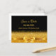 Elégante, classique, glamour et féminine style 70e anniversaire de fête enregistrer la carte postale date. Un faux ruban doré et arc avec parties scintillant dorée et scintillante, un peu de bling et de luxe pour un anniversaire. Arrière - plan noir. Avec le texte : Enregistrer la Date sur l'avant écrite avec un script de style manuscrit moderne. Modèles pour la date et le nom/le texte.