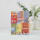 Peinture moderne colorée d'une rue avec des gens avec un pont dans l'arrière - plan