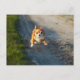 A long haired brown et White Chihuahua running. It has all four feet off the ground and looks like he is flying.