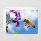 Carte animale d'une abeille volante sur une fleur fleurie.