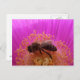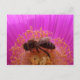 Carte postale d'abeille de miel collectant du pollen d'une fleur rose.