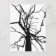 Cette carte postale présente un motif abstrait artistique, noir et blanc du sommet d'un tulipe en hiver avec des branches nues en silhouette.