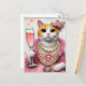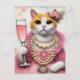 Carte Postale Adorable Chat Rose Robe avec Perles avec Boire