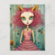 Carte Postale Adorable Dame Avec Oreilles De Chat Collage Média