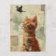 Carte Postale Adorable Ginger Kitten Avec Oiseau Noir Mélange Mé