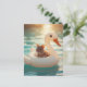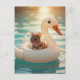 Carte Postale Adorable Mouse Floating on a Swan Float