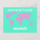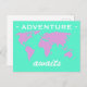 Cette magnifique carte postale turquoise et rose est parfaite pour tous ceux qui aiment voyager et l'aventure.