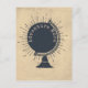 Tabletop world globe silhouette avec sunburst dos et "Adventure More" texte courbé sur arrière - plan en détresse