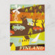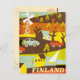 Affiche de voyage moderne Finlande du milieu du siècle. Dessin sur le paysage finlandais.