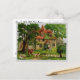 belle peinture illustration d'une ferme de campagne avec une dame vêtue d'une jupe bleue et d'un dessus rose qui nourrit des poulets bruns et avec une vache, un mouton, un agneau, une chèvre et des canards blancs qui nagent dans un étang, et entourée de grands arbres. grand chalet de campagne avec toit rouge et cheminée est une maison de la femme donnant de la nourriture aux poulets dans une ferme de loisirs avec des vaches, chèvres, chèvres, moutons, moutons, moutons, moutons, moutons, moutons, moutons, moutons, moutons, canards, et c'est une image de tranquillité.