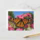 Le papillon Monarque est entouré de rose dans cette image florale et animalière, avec ciel bleu au-dessus. Ces fleurs d'Aster sont en pleine floraison en septembre, attirant l'attention de ces beaux papillons. Photo prise dans notre jardin du New Hampshire.