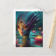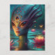 Un alien nage dans un étang la nuit avec des fleurs éclatantes.