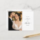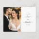 Personnalisez avec votre photo de mariage préférée et faites de ce mariage élégant carte postale de remerciement une façon parfaite d'express votre gratitude pour les amis et la famille qui ont partagé votre journée spéciale. Le script à la main chic dit "tout notre amour et merci à vous" sur le devant. Il y a de la place pour un message complet au dos à côté de votre adresse de retour.