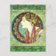 Carte postale Alphonse Mucha Laurel. Affiche de lithographie de l'époque Art nouveau. Le peintre tchèque Alphonse Mucha a créé quelques-unes des publicités et des affiches les plus appréciées de l'époque Art nouveau. Laurel est une belle allégorie printanière mettant en vedette une jeune femme magnifique en profil avec des fleurs et des lauriers dans ses cheveux. Le portrait est encadré par un motif complexe de feuilles imbriqués. Un beau cadeau pour les fans de Mucha, d'affiches d'art nouveau et vintage.
