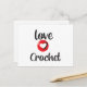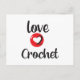 carte postale pour une crocheteuse, grandes lettres rouges et noires et un cœur. "Amour du Crochet"