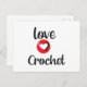 carte postale pour une crocheteuse, grandes lettres rouges et noires et un cœur. "Amour du Crochet"