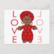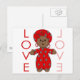 Poupée africaine rouge en papier avec le mot, "amour" sur les côtés.