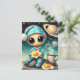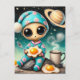Carte Postale Amusant Alien avec des oeufs frits dans l'espace