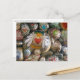 Douce petite carte postale colorée avec des rochers de méditation peints à la main et de minuscules coquilles en argent de l'artiste San Diego, Julie Ann Stricklin.