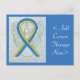 L'imprimé de la carte postale de l'ange gardien présente l'image d'une peinture d'ange à ruban bleu et jaune de conscience. Le ruban de sensibilisation bleu et jaune montre le soutien aux enfants atteints du syndrome de Down. Ajoutez vos propres mots ou messages optionnels à la carte postale pour des cartes d'art anges personnalisées ! Vous pouvez également supprimer le texte d'une impression de carte postale d'ange uniquement pour l'art. Les cartes postales de peinture d'ange bleu et jaune de conscience peuvent être customisées de messages personnalisés pour créer des images ou des images de sensibilisation pour les collecteurs de fonds, les cadeaux de sensibilisation ou d'autres événements spéciaux. Offrez cet art d'ange comme un cadeau de ruban de conscience pour toute occasion.
