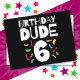 Cette conception d'anniversaire Dude 6 est parfaite pour une fête d'anniversaire pour les garçons qui ont six ans. Caractéristiques graphiques colorées de fête d'anniversaire pour enfants avec un design Dude d'anniversaire 6 que votre petit bonhomme va ADORER !