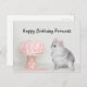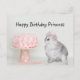 Jeune chat persan argenté ombré porte sa couronne de princesse rose et regarde son beau gâteau d'anniversaire rose carte postale d'anniversaire de princesse aimant les chats