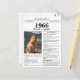 Souhaitez un joyeux anniversaire à quelqu'un né en 1966 avec cette carte postale d'anniversaire unique au style journal, comprenant une photo et une collection de faits amusants et d'actualités mondiales de l'année de leur naissance. Soyez créatif et créez un souvenir personnalisé. Conçu pour ressembler à un journal vintage dans un style noir et blanc classique. Une façon mignonne et amusante de célébrer les années 60 !