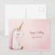 Cette carte postale rose représentant une licorne mignonne assise sur le côté avec un message personnalisable "joyeux anniversaire ma licorne" est un excellent choix de carte d'anniversaire pour votre petite fille, petite-fille ou neveu.