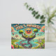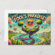 Voici la carte postale de voyage drôle et fantaisiste de April Fools' Day, qui présente un paysage surréaliste avec des îles flottantes, des arbres à l'envers et une route tortueuse. 😂 😜 ✨ Le ciel est rempli de nuages caricaturaux et de poissons volants, tandis qu'un soleil stupide et souriant avec des lunettes de soleil treillis le spectateur. La typographie audacieuse et ludique dit "Visitez le Paradis de l'idiot !", créant une ambiance décalée et imaginative.