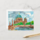 aquarelle traditionnelle paysage illustrant la cathédrale berlin derrière un pont historique à Berlin, Allemagne comme carte postale décorative.