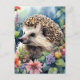 La carte postale présente un portrait animal sauvage d'un hérisson à gauche, entouré de nombreuses fleurs colorées. OEuvre botanique fleurie avec un petit mammifère épicé, populaire comme animal exotique !
