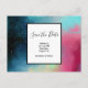Enregistrez la carte postale date avec un design abstrait cool et élégant. Les aquarelles se mélangent pour créer l'illusion d'une image spatiale. Vert avec des tourbillons de violet, jaune et rouge clair se mélangent avec un peu de points et d'étoiles blancs. Une élégante création artistique.