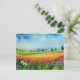 La carte postale artistique présente une scène d'aquarelle numérique générée par l'IA d'une belle prairie avec des fleurs sauvages à l'avant et une rangée d'arbres à l'horizon.