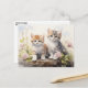 Carte Postale Aquarelle Springtime Kittens Geraniums rose