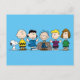 Découvrez Snoopy, Charlie Brown, Lucy, Pigpen, Schroeder, et Pepperment Patty aligné de suite.