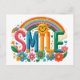 Éclairez la journée de quelqu'un avec cette belle carte postale Get Well Bientôt! Doté d'une façade joyeuse avec des fleurs colorées, un arc-en-ciel et le mot "sourire", il apporte chaleur et positivité. Le dos comprend un message sincère et un espace pour l’adresse du destinataire.
