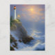 Belle et pittoresque carte postale d'art numérique générée par l'IA présente "la lumière directrice" un phare blanc brillant sur une falaise avec des vagues écrasantes en dessous.