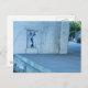 Blue hued urbanity - une photo d'un passage souterrain entre une route et le port de Wellington, en Nouvelle-Zélande. Caché sur un panneau sous le pont est un petit morceau de graffiti de style Banksy, montrant une femme en robe longue, foulard et tablier portant un char avec "C" dessus.