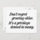 Ne regrette pas de vieillir. C'est un privilège refusé à beaucoup. Inconnu