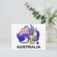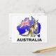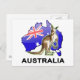 L'Australie est le plus petit continent, entre le Pacifique Sud et l'Océan Indien. Un kangourou est superposé sur la carte remplie de drapeau de l'Australie.