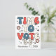 Faites passer votre message avec style grâce à cette carte postale de rappel "Time to Vote" d'inspiration rétro. Avec son design rouge, blanc et bleu vif, il capture l'esprit de patriotisme et encourage les gens à exercer leur droit de vote. Que vous rappeliez des amis, des familles ou des concitoyens à propos d'une élection à venir ou que vous alliez du soutien pour un candidat ou une cause spécifique, cette carte postale est l'outil parfait pour mobiliser et motiver les électeurs. Diffusez le message de manière très large et faites une différence pour façonner l'avenir de notre démocratie.