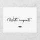 Express votre regret d'être en position d'annuler ou de reporter votre mariage, événement, fête ou célébration, et l'espoir de le reprogrammer dès que possible avec cette carte postale simple, élégante et moderne "Avec regrets" typographie avec deux petits coeurs. +++++++++++++++++++ Facile à personnaliser avec votre texte des deux côtés. ++++++++++++++++++++ Si vous souhaitez modifier le titre ou la disposition du design, envoyez-moi un message !